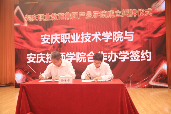 9月25日上午,安慶職教集團(tuán)化工產(chǎn)業(yè)學(xué)院、汽車產(chǎn)業(yè)學(xué)院和數(shù)字產(chǎn)業(yè)學(xué)院在集團(tuán)理事長單位安慶職業(yè)技術(shù)學(xué)院正式揭牌成立。副市長王愛武出席儀式并講話。集團(tuán)理事長安慶職業(yè)技術(shù)學(xué)院黨委書記王進(jìn),集團(tuán)副理事長、安慶職業(yè)技術(shù)學(xué)院院長畢明生,安慶師范大學(xué)副校長汪時(shí)珍以及安慶市教體局局長胡海生,集團(tuán)副理事長、安慶職業(yè)技術(shù)學(xué)院副院長李克讓,集團(tuán)理事會(huì)理事,產(chǎn)業(yè)學(xué)院理事會(huì)理事、院長、副院長,安慶職業(yè)技術(shù)學(xué)院領(lǐng)導(dǎo)班子成員出席。