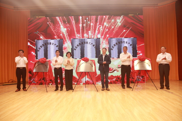 王愛武、汪時珍、畢明生及三個產(chǎn)業(yè)學院院長為產(chǎn)業(yè)學院揭牌。