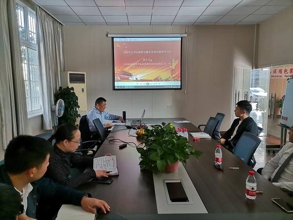 10月9日,安慶職業(yè)技術(shù)學院安排高職研究所所長吳一鳴副研究員有關(guān)專家到安慶職院“雙百”行動包保企業(yè)、安徽和美瑞醫(yī)用包裝材料有限公司和安慶中奧汽車銷售服務有限公司宣講習近平總書記考察安徽和在合肥主持召開扎實推進長三角一體化發(fā)展座談會重要講話精神。兩企業(yè)中層干部和安慶職院駐企干部石望東、鄒韶明參加學習交流。