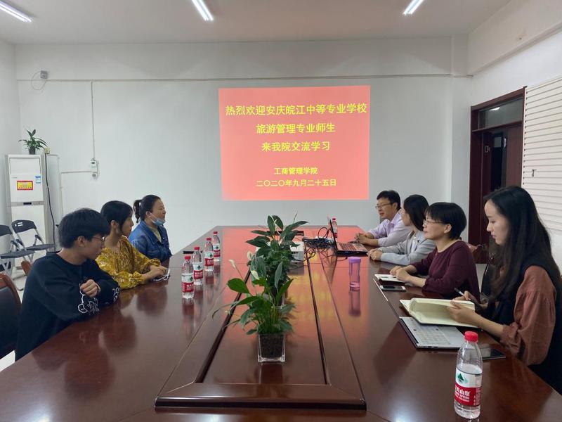何赟代表工商管理學(xué)院熱烈歡迎安慶皖江中等專業(yè)學(xué)校師生3人的到來(lái),并介紹了安徽機(jī)電職業(yè)技術(shù)學(xué)院旅游管理專業(yè)歷年在技能大賽方面取得的佳績(jī)。