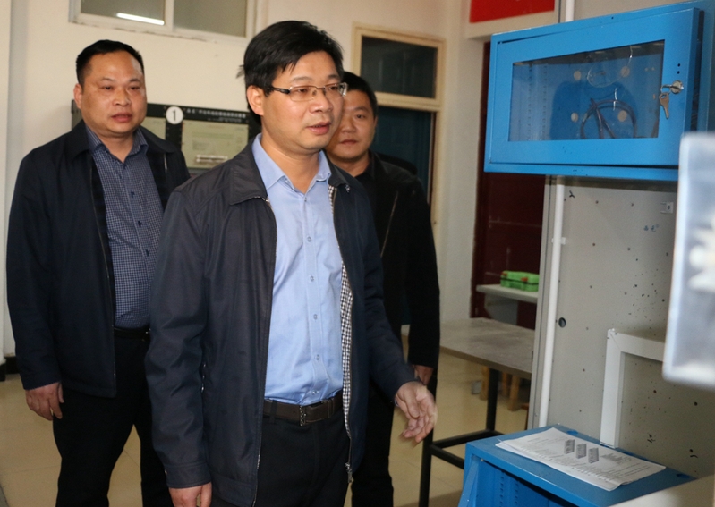會前,徐雄一行實地查看了江淮工業(yè)學校綜合網(wǎng)絡布線機房等實訓室設施設備,聽取了潘松校長學校辦學情況匯報,眺望學校在建國家發(fā)改委項目“開放式技能機加工綜合實訓基地”及塑膠操場工程現(xiàn)場。