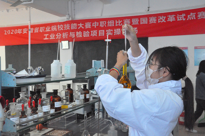 10月9日至10日,2020年安徽省職業(yè)院校技能大賽(中職組)工業(yè)分析檢驗(yàn)賽項(xiàng)在安徽化工學(xué)校順利舉行。來(lái)自全省12支代表隊(duì)24名選手同場(chǎng)競(jìng)技?;埡堂顥顑晌恢笇?dǎo)老師率領(lǐng)由徐莉、陳梓婷和任東、張瑞陽(yáng)等4位同學(xué)組成兩支代表隊(duì)參加比賽。老師和同學(xué)們克服困難,特別是今年上半年的疫情影響,努力學(xué)習(xí),刻苦訓(xùn)練,在強(qiáng)手如林、競(jìng)爭(zhēng)激烈的情況下,沉著冷靜,順利地完成了專業(yè)理論和仿真、化學(xué)分析和儀器分析三場(chǎng)考核。經(jīng)過(guò)兩天緊張角逐,化校兩支代表隊(duì)奪得該項(xiàng)目賽團(tuán)體一、二等獎(jiǎng),這是化校自2013年以來(lái)在該項(xiàng)賽事中連續(xù)第七次獲獎(jiǎng)。