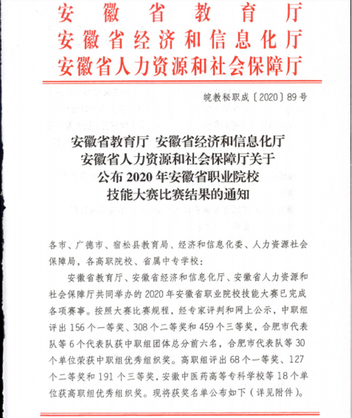 近日,省教育廳、經(jīng)信廳和人社廳聯(lián)合發(fā)文,公布2020年安徽省職業(yè)院校技能大賽比賽結(jié)果,安徽化工學(xué)校喜獲中職組工業(yè)分析與檢驗(yàn)賽項(xiàng)團(tuán)體一、二等獎(jiǎng)。