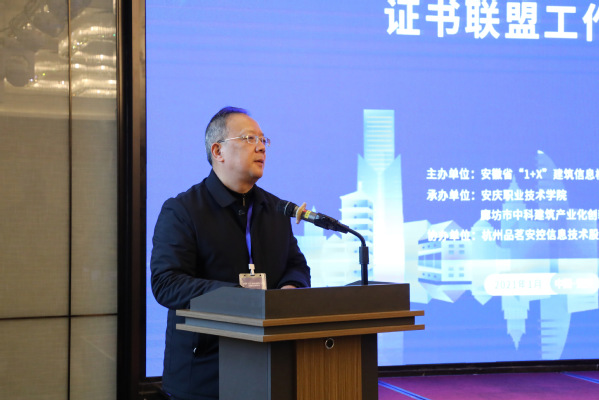 1月9日,安徽省“1+X”(BIM)證書聯(lián)盟工作研討會在安慶世紀(jì)緣酒店成功舉辦。安慶職業(yè)技術(shù)學(xué)院校長畢明生,副校長、安徽省BIM證書聯(lián)盟秘書長譚維奇,廊坊市中科建筑產(chǎn)業(yè)化創(chuàng)新研究中心副主任、江蘇城鄉(xiāng)建設(shè)職業(yè)學(xué)院副校長王偉等出席會議并講話。來自安徽省BIM證書聯(lián)盟的22所院校建工院院長和相關(guān)骨干老師、以及廊坊中科安徽省工作辦公室、杭州品茗安控信息技術(shù)股份有限公司的代表參加了會議。會議由安慶職業(yè)技術(shù)學(xué)院建筑工程學(xué)院負(fù)責(zé)同志主持。