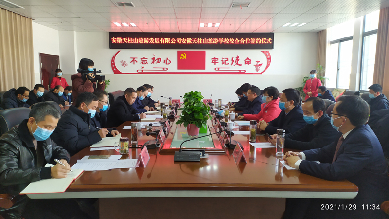 1月29日,安徽天柱山旅游學校與安徽天柱山旅游發(fā)展有限公司舉行校企合作簽約儀式。潛山市市委常委、天管會副主任涂高生出席并講話,副市長蔡婷婷、趙偉出席并授牌,度假區(qū)、教育局、人社局、文旅體局、天柱山旅游學校、天柱山旅游公司等單位負責同志參加。