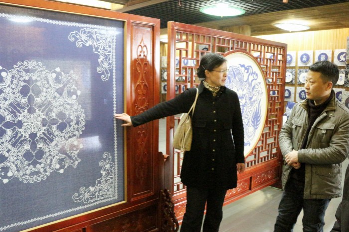 倪進(jìn)一行到校后即深入到該校文化產(chǎn)業(yè)示范基地申報(bào)主體望江挑花保護(hù)與傳承基地,實(shí)地考察了望江挑花會(huì)客廳、演藝廳、展覽室、技能大師工作室、望江挑花博物館等場(chǎng)所,認(rèn)真聽取了該?;厩闆r的介紹,詳細(xì)查閱了申報(bào)材料,并對(duì)照省第七批文化產(chǎn)業(yè)示范基地有關(guān)認(rèn)定標(biāo)準(zhǔn),提出了指導(dǎo)性建議。倪進(jìn)對(duì)該校堅(jiān)持“職業(yè)教育、文化傳承、旅游發(fā)展”的特色辦學(xué)之路,充分發(fā)揮地方特色文化資源,吸收和創(chuàng)新徽派文化,籌建國(guó)家非遺望江挑花保護(hù)與傳承基地,設(shè)立望江挑花博物館;堅(jiān)持非遺活態(tài)傳承,積極研發(fā)、生產(chǎn)特色文化旅游產(chǎn)品,走市場(chǎng)化、產(chǎn)業(yè)化發(fā)展道路;采用“公司+農(nóng)戶”的運(yùn)營(yíng)模式,輻射帶動(dòng)貧困戶增收,助力脫貧攻堅(jiān)等創(chuàng)新舉措及所取得的成績(jī)給予充分肯定和高度評(píng)價(jià)。