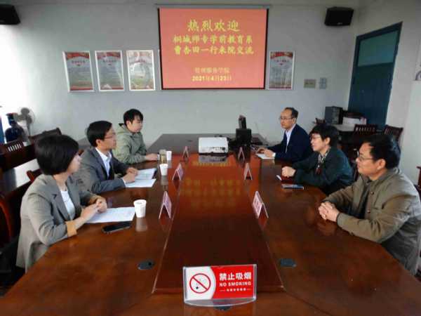 4月23日上午,桐城師范高等??茖W校學前教育系副主任曹杏田一行到安慶職業(yè)技術(shù)學院考察交流實訓室建設(shè)與管理工作。安慶職業(yè)技術(shù)學院管理服務(wù)學院院長、黨總支書記高潤霞在管理服務(wù)學院會議室接待了曹杏田一行,管理服務(wù)學院副院長楊厚松、幼兒發(fā)展與健康管理專業(yè)相關(guān)同志參加了交流。