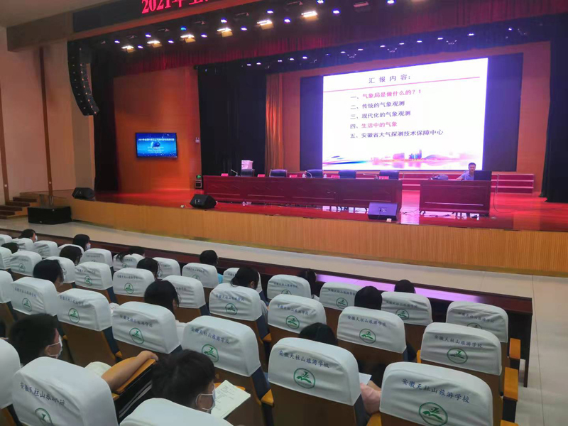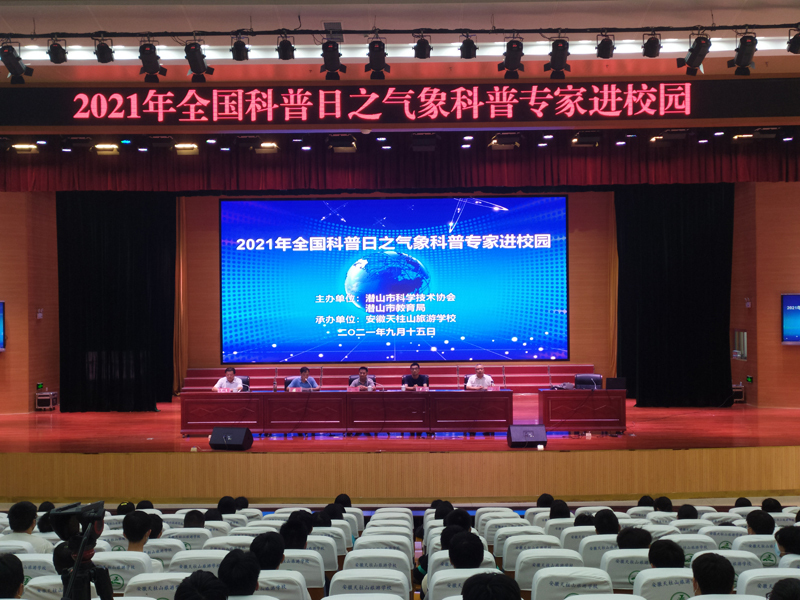 9月15日,潛山市科學(xué)技術(shù)協(xié)會(huì)、潛山市教育局主辦的2021全國(guó)科普日之氣象科普專家進(jìn)校園活動(dòng)在安徽天柱山旅游學(xué)校拉開帷幕,活動(dòng)邀請(qǐng)安徽省大氣探測(cè)技術(shù)保障中心高級(jí)工程師、安徽省科學(xué)技術(shù)協(xié)會(huì)科學(xué)傳播專家錢毅和安徽省氣象學(xué)會(huì)高級(jí)工程師朱亞宗,為安徽天柱山旅游學(xué)校2020級(jí)部分同學(xué)宣傳普及氣象知識(shí)。潛山市科學(xué)技術(shù)協(xié)會(huì)主席沈懷東、潛山市教育局安全辦主任王海波和安徽天柱山旅游學(xué)校副校長(zhǎng)操云龍出席活動(dòng)。