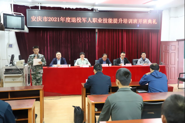 2021年10月13日上午,安慶技師學(xué)院在教學(xué)樓階梯教室舉行安慶市2021年度退役軍人職業(yè)技能提升培訓(xùn)班開班典禮。此次培訓(xùn)旨在為全市退役軍人提供精準(zhǔn)高效的職業(yè)技能培訓(xùn),適應(yīng)地方工作需要,更好融入社會(huì)發(fā)展。共有38名退役軍人共同參加了本期培訓(xùn)班。