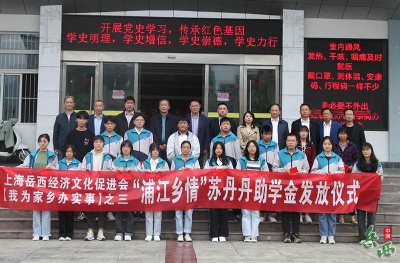 捐資助學(xué),情滿校園。上海岳西經(jīng)濟(jì)文化促進(jìn)會(huì)“浦江鄉(xiāng)情”蘇丹丹助學(xué)金是岳西藉優(yōu)秀企業(yè)家蘇丹丹女士設(shè)立的,旨在資助岳西縣困難高中生和在上海就讀的岳西籍困難在校大學(xué)生。此次捐資助學(xué)是蘇丹丹女士回報(bào)桑梓、為家鄉(xiāng)辦實(shí)事活動(dòng)之一。(撰稿:孫啟明 審核:儲(chǔ)朝曦 審批:葉學(xué)軍)