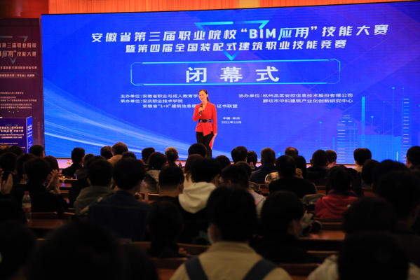 1017日,安徽省第三屆職業(yè)院?!?/span>BIM應(yīng)用”技能大賽暨第四屆全國(guó)裝配式建筑職業(yè)技能競(jìng)賽建筑信息模型技術(shù)員(學(xué)生組)選拔賽完成全部比賽任務(wù),圓滿(mǎn)落幕(BIM全稱(chēng)Building Information Modeling,即建筑信息模型)。安慶市副市長(zhǎng)楊林,省教育廳高教處主任任雯君,安慶職業(yè)技術(shù)學(xué)院黨委書(shū)記童宏葵、校長(zhǎng)畢明生等領(lǐng)導(dǎo)出席閉幕式,為獲獎(jiǎng)選手和團(tuán)體頒獎(jiǎng),與大賽評(píng)審專(zhuān)家合影留念。安徽省BIM工程中心副主任、安徽建筑大學(xué)土木工程系主任陳東對(duì)大賽進(jìn)行總結(jié)點(diǎn)評(píng)。中國(guó)建設(shè)教育協(xié)會(huì)教育技術(shù)專(zhuān)業(yè)委員會(huì)秘書(shū)長(zhǎng)、廊坊市中科建筑產(chǎn)業(yè)化創(chuàng)新研究中心副主任張建奇,安徽省“1+XBIM 證書(shū)聯(lián)盟秘書(shū)長(zhǎng)、安慶職院副校長(zhǎng)譚維奇分別講話(huà)。安慶職院酒店管理專(zhuān)業(yè)教師沈娟娟主持儀式。