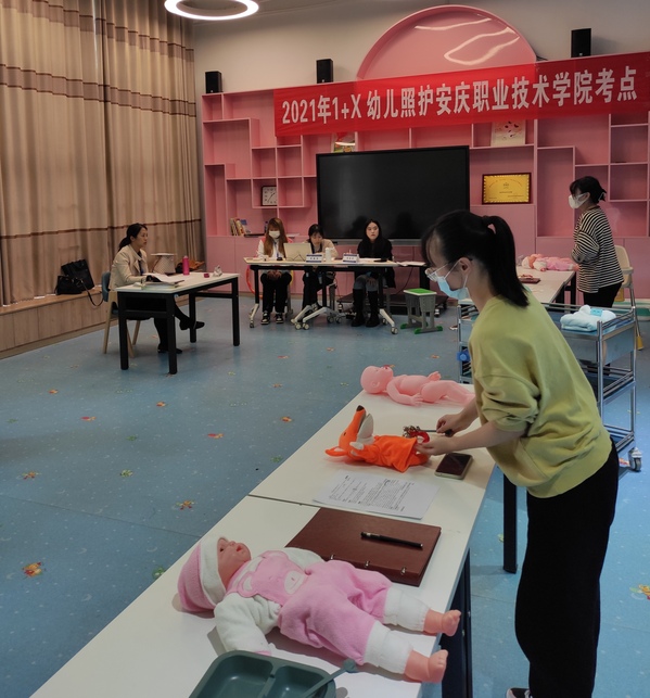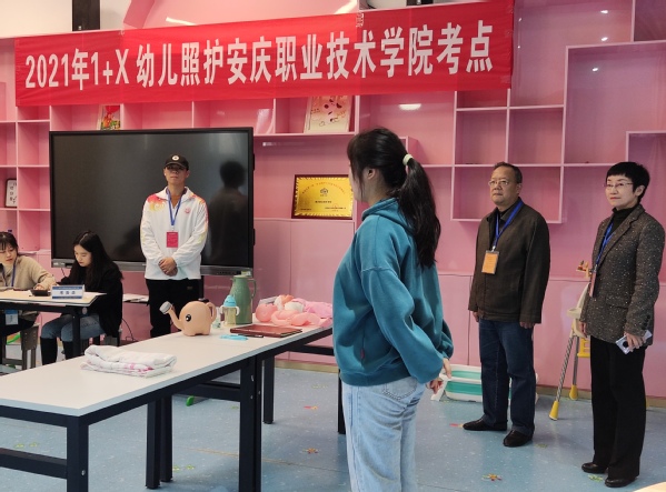 11月20-21日,安慶職業(yè)技術(shù)學(xué)院2021年1+X幼兒照護(hù)職業(yè)技能等級證書考試順利舉行。來自幼兒發(fā)展與健康管理專業(yè)的152名學(xué)生分三批次進(jìn)行理論和實操考試??键c(diǎn)負(fù)責(zé)人副校長譚維奇帶領(lǐng)巡考組成員檢查了整個考試工作。