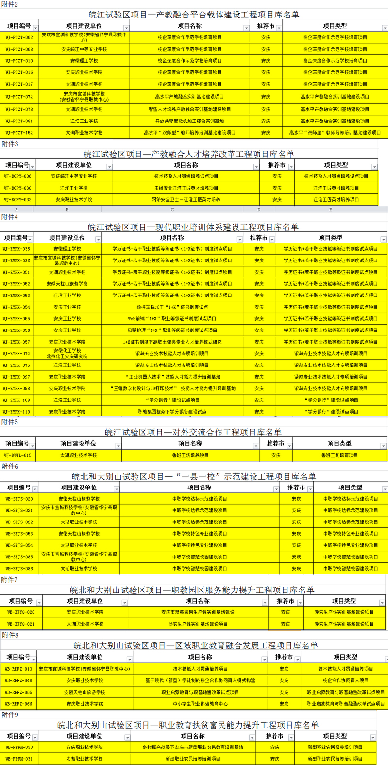 近日,安徽省教育廳公布了安徽省職業(yè)教育創(chuàng)新發(fā)展試驗(yàn)區(qū)項(xiàng)目培育庫,集團(tuán)共43個(gè)項(xiàng)目入圍,名單如下: