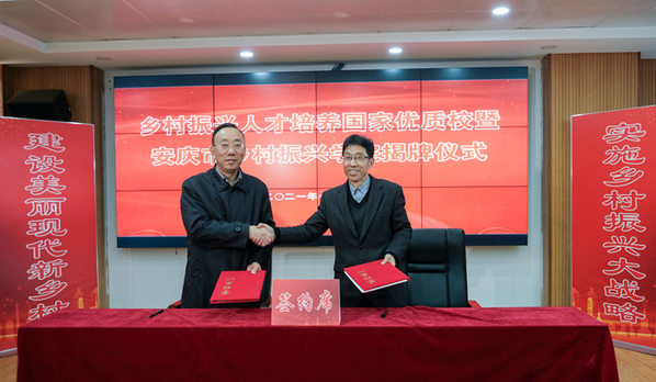 12月1日上午,鄉(xiāng)村振興人才培養(yǎng)國(guó)家優(yōu)質(zhì)校暨安慶市鄉(xiāng)村振興學(xué)院揭牌儀式在安慶職業(yè)技術(shù)學(xué)院隆重舉行。副市長(zhǎng)劉克勝,安慶職院黨委書記童宏葵,校黨委副書記、校長(zhǎng)畢明生,市鄉(xiāng)村振興局局長(zhǎng)吳永生、副局長(zhǎng)王輝,校領(lǐng)導(dǎo)李克讓、潘發(fā)生出席揭牌儀式。安慶市鄉(xiāng)村振興學(xué)院建設(shè)發(fā)展工作領(lǐng)導(dǎo)小組全體成員及安慶職院農(nóng)林與服裝學(xué)院、教務(wù)處、學(xué)生處、科技處、招就處、培訓(xùn)部、校企合作辦等單位相關(guān)負(fù)責(zé)同志參加揭牌儀式。