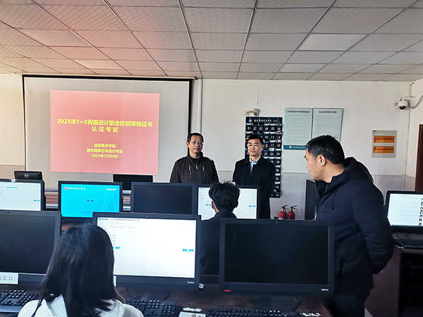 12月4日,安慶職業(yè)技術(shù)學(xué)院信息技術(shù)學(xué)院數(shù)字媒體藝術(shù)設(shè)計(jì)專業(yè)首次舉辦1+X界面設(shè)計(jì)職業(yè)技能等級(jí)證書(shū)認(rèn)證考試,2019級(jí)、2020級(jí)數(shù)字媒體藝術(shù)設(shè)計(jì)專業(yè)共計(jì)60名學(xué)生參加考試??荚嚻陂g,實(shí)驗(yàn)實(shí)訓(xùn)中心主任李進(jìn)恩、信息技術(shù)學(xué)院院長(zhǎng)疏國(guó)會(huì)等深入現(xiàn)場(chǎng)巡查考務(wù)工作。