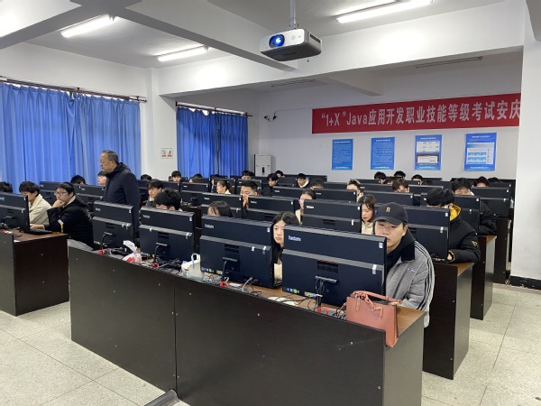 12月25日上午,“1+X”Java應用開發(fā)職業(yè)技能等級證書考試在安慶職業(yè)技術學院圖文信息中心502實訓室順利舉行,安慶職院副校長譚維奇到考試到場巡視,實驗實訓中心主任李進恩,信息技術學院院長疏國會陪同。來自信息技術學院的55名考生參加了考試。