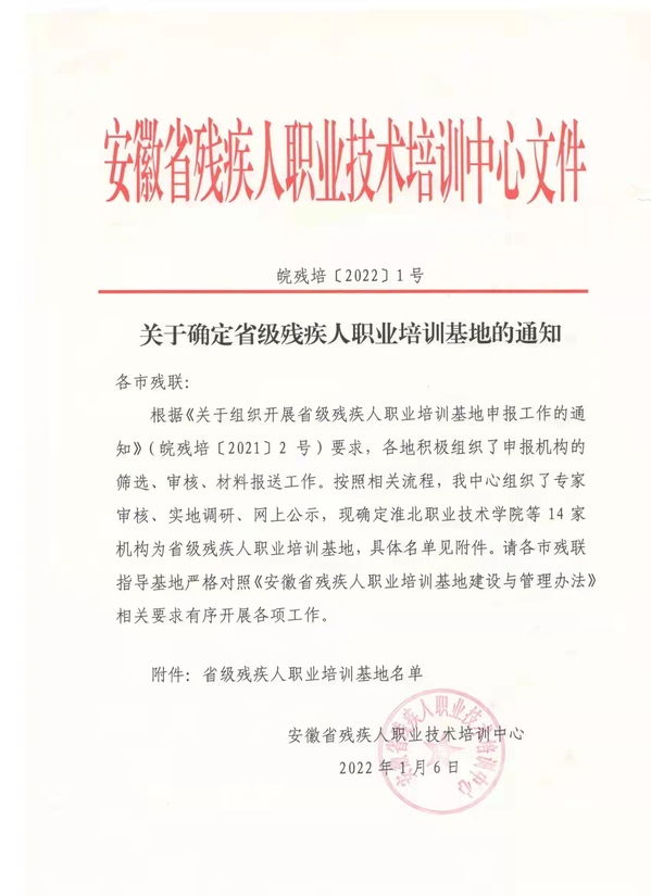 1月6日,安慶職業(yè)技術(shù)學(xué)院獲批省級(jí)殘疾人職業(yè)培訓(xùn)基地,這是安慶職院在培訓(xùn)基地建設(shè)方面又一重大成果。