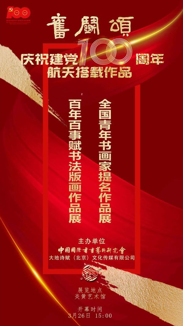 2021年6月,神舟十二號(hào)發(fā)射,這是中國(guó)空間站在軌建造階段的首次載人飛行任務(wù)。為慶祝建黨100周年,歌頌黨的百年奮斗歷史和偉大成就,由中國(guó)國(guó)際書畫藝術(shù)研究會(huì)、大地詩(shī)賦(北京)文化傳媒有限公司等機(jī)構(gòu)共同策劃組織了《奮斗頌》建黨百年書畫藝術(shù)大展,100件版畫作品經(jīng)中國(guó)載人航天工程辦公室批準(zhǔn)支持,以原作和影像的形式,成功搭載神舟十二號(hào)遨游太空,并于2021年9月27日在北京航天城舉行了隆重的開艙交接儀式。這批歌頌黨的百年奮斗歷史、承載著中華民族千百年來(lái)飛天之夢(mèng)、見證了我國(guó)載人航天事業(yè)高光時(shí)刻的書畫賦作品,具有著特殊的歷史意義和審美價(jià)值。