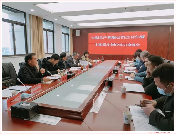 隨后召開座談會(huì),座談會(huì)由太湖縣教育局黨委書記、局長王三保主持,縣經(jīng)開區(qū)黨工委委員、管委會(huì)副主任查樂平到會(huì),縣教育局、縣經(jīng)開區(qū)分管校企合作工作的負(fù)責(zé)同志及縣內(nèi)三所職業(yè)學(xué)校校長、縣首位產(chǎn)業(yè)相關(guān)的八家企業(yè)負(fù)責(zé)人參加了座談會(huì)。會(huì)上,首先大家一起學(xué)習(xí)了教育部等八部委新頒布的《職業(yè)學(xué)校學(xué)生實(shí)習(xí)管理規(guī)定》,認(rèn)真聽取了學(xué)校和企業(yè)負(fù)責(zé)人就落實(shí)產(chǎn)教融合、校企合作工作中存在的問題及改進(jìn)工作的建議,校企之間進(jìn)行了廣泛交流,與會(huì)人員就校企合作工作紛紛建言獻(xiàn)策。