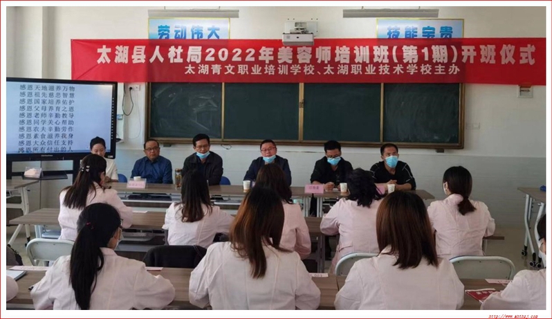 為落實民生工程,扎實開展職業(yè)技能培訓(xùn),為社會培養(yǎng)從業(yè)人員和創(chuàng)業(yè)人員,5月17日上午,太湖縣人社局2022年美容師培訓(xùn)班(第1期)在太湖職業(yè)技術(shù)學(xué)校正式開班。