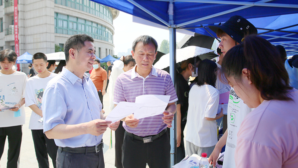童宏葵等領(lǐng)導(dǎo)在現(xiàn)場與企業(yè)及同學(xué)們進行交流、詢問,了解學(xué)生參與情況。雙選會上,資格審核、展位引導(dǎo)、招聘咨詢、后勤保障、志愿服務(wù)井然有序。同學(xué)們精心準備自薦求職材料,積極與用人單位交流,了解招聘流程、崗位需求、實習(xí)待遇等有關(guān)事宜。企業(yè)代表耐心、熱情地解答學(xué)生的問題,活動現(xiàn)場氛圍濃厚。