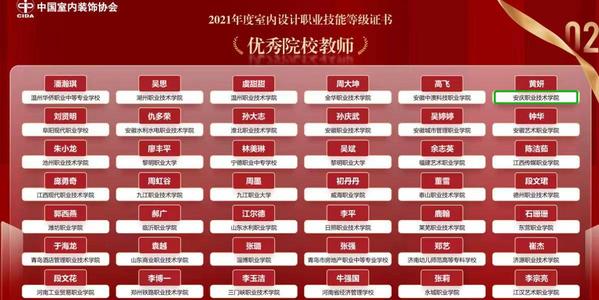 自接到比賽通知后,安慶職院高度重視,積極組建指導(dǎo)老師團(tuán)隊(duì),選拔參賽學(xué)生,制定訓(xùn)練方案,在比賽過(guò)程中,同學(xué)們充分發(fā)揮自己扎實(shí)的專業(yè)技能,攻堅(jiān)克難、沉著應(yīng)戰(zhàn),團(tuán)結(jié)協(xié)作,最終取得了全國(guó)三等獎(jiǎng)的好成績(jī)。比賽結(jié)束后,中國(guó)室內(nèi)裝飾協(xié)會(huì)對(duì)2021年度“1+X(室內(nèi)設(shè)計(jì))”證書試點(diǎn)工作中表現(xiàn)突出的優(yōu)秀院校代表和教師個(gè)人進(jìn)行了表彰。學(xué)校在2021至2022學(xué)年的室內(nèi)設(shè)計(jì)“1+X”證書考核中,初級(jí)通過(guò)率達(dá)到96%,中級(jí)通過(guò)率達(dá)到100%,高級(jí)通過(guò)率達(dá)到100%,在此次表彰中獲得2021年度“1+X(室內(nèi)設(shè)計(jì))”證書優(yōu)秀試點(diǎn)院校,指導(dǎo)老師黃妍獲“優(yōu)秀院校教師”稱號(hào)。