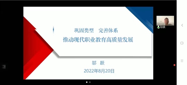 8月20日下午,根據(jù)安徽省高職院校教學工作診斷與改進專家委員會下發(fā)的《關(guān)于召開現(xiàn)代職業(yè)教育高質(zhì)量發(fā)展研討會的通知》要求,安慶職業(yè)技術(shù)學院全體校領(lǐng)導及教務處、人事處、學生處、信息中心、質(zhì)量辦、二級學院負責人等準時參加了線上會議。