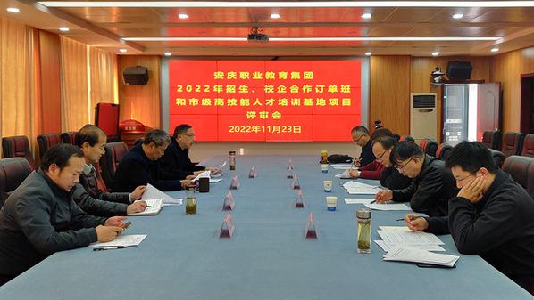11月23日,安慶職業(yè)教育集團(tuán)2022年度招生、校企合作訂單班和市級(jí)高技能人才培訓(xùn)基地項(xiàng)目評(píng)審工作在安慶職業(yè)技術(shù)學(xué)院順利舉行。