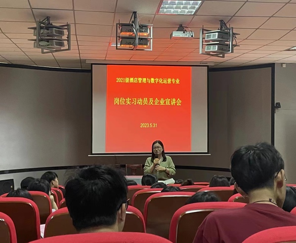 為引導(dǎo)學(xué)生做好實(shí)習(xí)前的各項(xiàng)準(zhǔn)備工作,扎實(shí)推進(jìn)2021級(jí)學(xué)生崗位實(shí)習(xí)工作順利、有序開展。5月31日和6月1日安慶職業(yè)技術(shù)學(xué)院管理服務(wù)學(xué)院酒店管理與數(shù)字化運(yùn)營專業(yè)與旅游管理專業(yè)分別召開了實(shí)習(xí)動(dòng)員會(huì)和企業(yè)宣講會(huì),管理服務(wù)學(xué)院院長陳穎、副院長李敏、專業(yè)建設(shè)負(fù)責(zé)人、輔導(dǎo)員、團(tuán)隊(duì)專業(yè)教師及2021級(jí)170余名實(shí)習(xí)學(xué)生參加會(huì)議。