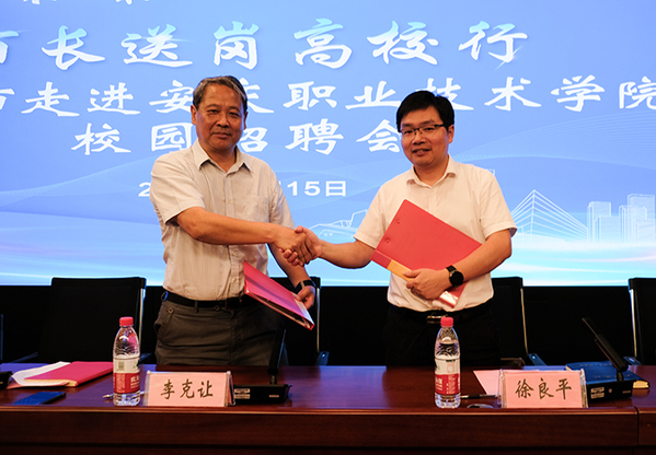 在全國上下認真學(xué)習(xí)領(lǐng)會黨的二十大精神之際,為貫徹落實黨中央、國務(wù)院關(guān)于“穩(wěn)就業(yè)”“保就業(yè)”等相關(guān)決策部署,全面落實全國高校畢業(yè)生就業(yè)工作會議精神,整合政校企三方資源,積極引導(dǎo)畢業(yè)生本地就業(yè)創(chuàng)業(yè),進一步提升安慶職業(yè)技術(shù)學(xué)院服務(wù)安慶地方經(jīng)濟高質(zhì)量發(fā)展能力,6月15日,“市長送崗高校行”桐城市校園專場招聘會和“太愛才-職等您來”太湖縣校園專場招聘會在安慶職院圖文信息中心舉行。校黨委副書記李克讓出席活動并致辭。桐城市副市長徐良平、太湖縣縣委組織部副部長,縣人力資源和社會保障局黨組書記、局長張文斌出席活動。