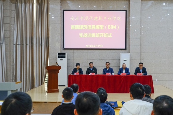 4月19日,由安慶市現(xiàn)代建筑產(chǎn)業(yè)學(xué)院主辦,安慶職業(yè)技術(shù)學(xué)院建筑工程學(xué)院承辦的首期建筑信息模型(BIM)實(shí)戰(zhàn)訓(xùn)練班在該校1號(hào)教學(xué)樓開班,校黨委委員、副校長(zhǎng)、安慶市現(xiàn)代建筑產(chǎn)業(yè)學(xué)院理事長(zhǎng)程飛,安慶市住房和城鄉(xiāng)建設(shè)局建筑業(yè)管理辦公室主任彭輝,安慶國(guó)豐住宅產(chǎn)業(yè)化集團(tuán)有限公司副董事長(zhǎng)謝其盛,建筑工程學(xué)院相關(guān)負(fù)責(zé)同志出席開班儀式。建筑工程學(xué)院黨總支書記、院長(zhǎng)、安慶市現(xiàn)代建筑產(chǎn)業(yè)學(xué)院院長(zhǎng)陳月萍主持開班儀式。來(lái)自安徽萬(wàn)緯工程管理有限責(zé)任公司、博信達(dá)建設(shè)集團(tuán)有限公司、安徽偉達(dá)集團(tuán)等9家建筑施工、造價(jià)咨詢、工程監(jiān)理企業(yè)共計(jì)37名學(xué)員參加培訓(xùn)。