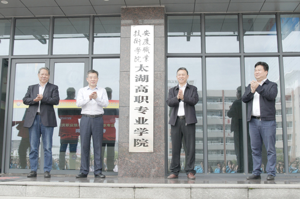 4月23日上午,安慶職業(yè)技術(shù)學(xué)院太湖高職專業(yè)學(xué)院簽約暨揭牌儀式在太湖職業(yè)技術(shù)學(xué)校隆重舉行。安慶職院黨委書記童宏葵、太湖縣委書記朱小兵出席簽約儀式并為太湖高職專業(yè)學(xué)院揭牌。安慶職業(yè)技術(shù)學(xué)院太湖高職專業(yè)學(xué)院的成立標(biāo)志著該校在“立足地方服務(wù)地方”的辦學(xué)方向、優(yōu)化安慶高等職業(yè)教育布局、為全市經(jīng)濟(jì)社會高質(zhì)量發(fā)展提供人才支撐的道路上,又邁出了堅實的一步。