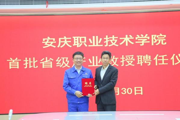 4月30日下午,安慶職業(yè)技術(shù)學院在綜合樓425會議室舉行了該校首批省級產(chǎn)業(yè)教授聘任儀式,安慶職院黨委副書記、校長畢明生出席聘任儀式并向受聘教授頒發(fā)聘書。安慶職院黨委委員、組織部部長、人事處處長高潤霞主持儀式,相關(guān)二級學院院長、組織人事處、教務(wù)處、科技處負責人參加。