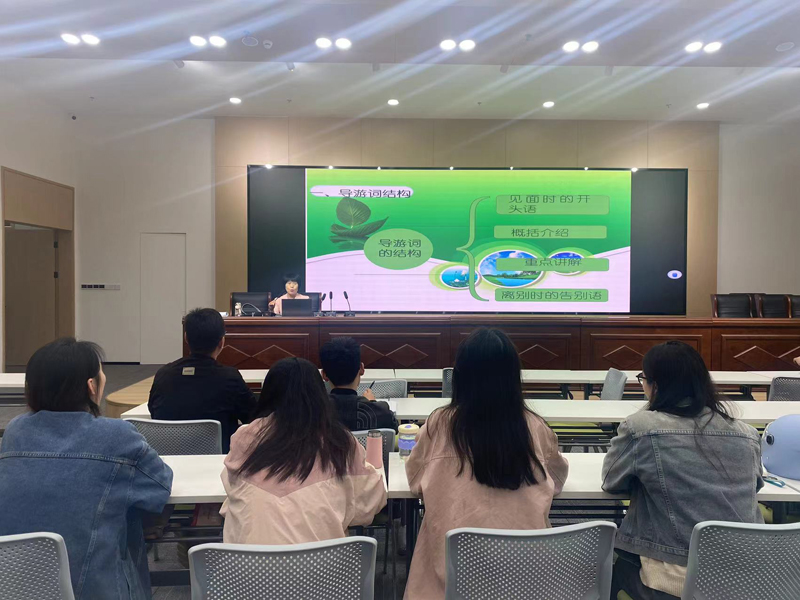 本次培訓班為期10天,其中理論培訓3天,根據(jù)實際情況,在原來導游業(yè)務(wù)、導游基礎(chǔ)、模擬導游、天柱山導游實務(wù)等課程基礎(chǔ)上,新增了紅十字知識及救護概論和常見急癥、意外傷害、突發(fā)事件處理等新課程,從理論到實操極大增強了課程實用性;景區(qū)實習5天,由有經(jīng)驗的老導游帶領(lǐng)學員輪流現(xiàn)場實習模擬導游講解,地點涵蓋大部分潛山A級景區(qū),讓學員能以最快速度成長為一名業(yè)務(wù)能力過硬的講解員;面試考核2天,內(nèi)容為形象展示、景點講解、才藝展示等。學校旅游專業(yè)教師葛愛云被邀請對學員進行理論培訓,并作為導游面試評委全程參與考核。