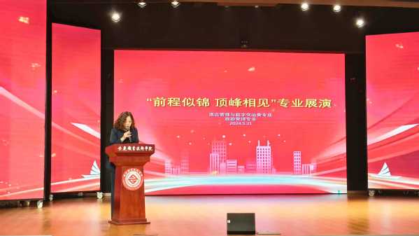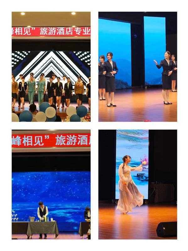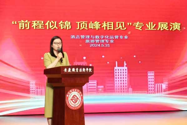 為提升和檢驗(yàn)專業(yè)技能學(xué)習(xí)成效,促進(jìn)課程思政第一課堂與第二課堂同向同行,推動畢業(yè)生本地就業(yè),5月31日下午,安慶職業(yè)技術(shù)學(xué)院管理服務(wù)學(xué)院酒店數(shù)字化運(yùn)營、旅游管理專業(yè)聯(lián)合在幼兒三期實(shí)訓(xùn)室舉行“前程似錦·頂峰相見”校企共聯(lián)專業(yè)展演活動。活動邀請了安慶會展中心會議中心酒店、合肥豐大國際酒店、安慶豐大酒店、安慶香瀾豪庭酒店、安慶碧桂園鳳凰酒店、安慶世紀(jì)緣酒店、中國移動安慶分公司等文旅相關(guān)企業(yè)出席。學(xué)校教務(wù)處、校團(tuán)委等負(fù)責(zé)同志、管理服務(wù)學(xué)院班子及師生代表參加了此次展演活動。
