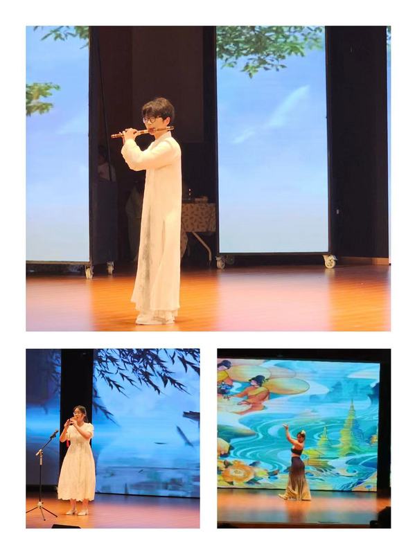 此次展演活動包含酒店、旅游專業(yè)技能展演和冷餐會兩個部分。酒店專業(yè)技能展演有酒店工服秀、職業(yè)禮儀操、托盤舞、調(diào)酒、插花、茶藝等相關(guān)技能展示。旅游專業(yè)技能展演有拉丁舞、藏族舞、竹笛、傣族舞、葫蘆絲等才藝展示。冷餐會內(nèi)容涵蓋了嘉賓迎送、嘉賓餐中服務(wù)、果盤制作、伴手禮制作、會場布置等相關(guān)技能展示,旨在通過讓同學(xué)們“沉浸式”現(xiàn)場操作,將《宴會餐飲》《酒店客房服務(wù)》《酒店禮儀》《酒店技能實(shí)訓(xùn)》等相關(guān)理實(shí)課程、旅游技能大賽備賽等學(xué)習(xí)成果進(jìn)行集中展示和運(yùn)用,促進(jìn)一二課堂同向同行。