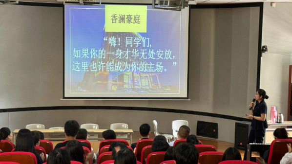 下午1點(diǎn)半,安慶香瀾豪庭酒店、安慶世紀(jì)緣國際酒店、合肥豐大國際酒店等十家企業(yè)進(jìn)場宣講,每個酒店都對自己崗位需求、企業(yè)文化以及學(xué)生關(guān)心的職業(yè)發(fā)展、食宿安排等方面做了詳細(xì)的介紹。