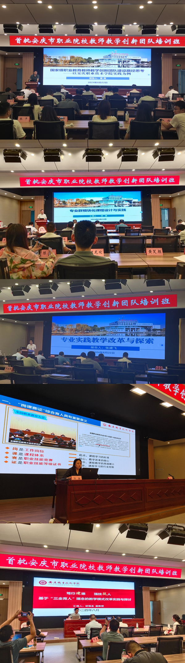 為深化安慶市職業(yè)教育改革與創(chuàng)新,提升職業(yè)院校教師在師德、團隊領(lǐng)導、課程建設(shè)、教學研究等方面的素養(yǎng)與能力,8月22日至23日,首批安慶市職業(yè)院校教師教學創(chuàng)新團隊培訓班在安慶職業(yè)技術(shù)學院成功舉辦。10支安慶市職業(yè)院校教師教學創(chuàng)新團隊負責人和核心成員共計29人參加培訓。