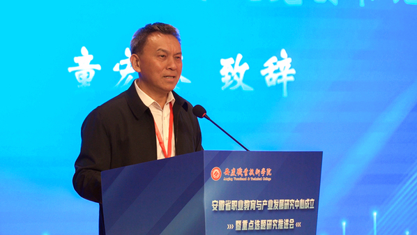 高原代表安徽省教育廳高教處對研究中心的成立表示熱烈的祝賀,并為研究中心專家指導(dǎo)委員會委員頒發(fā)聘書。他指出,安徽高教戰(zhàn)線正在以習(xí)近平總書記殷殷囑托為指引,全面學(xué)習(xí)宣傳貫徹總書記關(guān)于教育的重要論述、考察安徽重要講話精神,認(rèn)真貫徹落實全國教育大會關(guān)于教育強國建設(shè)的總體部署要求,錨定打造“三地一區(qū)”戰(zhàn)略定位,全面落實立德樹人根本任務(wù),持續(xù)提升高等教育創(chuàng)新發(fā)展能力,切實推動安徽高等教育內(nèi)涵式發(fā)展、高質(zhì)量發(fā)展。他指出,在過去二十多年里,安徽在加快高等職業(yè)教育改革發(fā)展上作出了很多創(chuàng)新性探索,實踐豐富多彩但理論研究卻相對滯后。研究中心的成立,是我省集聚力量、創(chuàng)新機制、打造平臺,加快補齊研究“短板”的重要舉措。他強調(diào),研究中心要聚焦安徽省職業(yè)教育和產(chǎn)業(yè)發(fā)展的現(xiàn)實問題,堅持問題導(dǎo)向、項目推動,真正發(fā)揮好省級研究基地的平臺功能,有效地凝聚起全省職業(yè)教育研究力量,有組織、接地氣地開展研究。要聚焦安徽產(chǎn)業(yè)創(chuàng)新發(fā)展、職業(yè)教育內(nèi)涵建設(shè)、產(chǎn)教供需適配機制建設(shè)、產(chǎn)教科城融合發(fā)展、職業(yè)教育制度供給等方面加強研究,培育產(chǎn)出高質(zhì)量研究成果,早日成為安徽職業(yè)教育改革發(fā)展的理論高地、智庫平臺、學(xué)術(shù)窗口、靚麗名片。