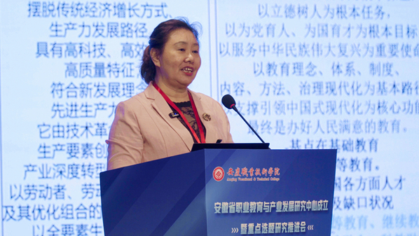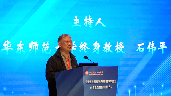 石偉平教授在主持課題發(fā)布和主旨報告環(huán)節(jié)中,特別表達了對研究中心未來發(fā)展的期許。他指出,在新質(zhì)生產(chǎn)力發(fā)展過程中,產(chǎn)教融合不僅是職業(yè)教育也是高等教育的重要課題。作為與產(chǎn)業(yè)升級、與經(jīng)濟發(fā)展聯(lián)系最為密切的類型教育,職業(yè)教育要在推進產(chǎn)教融合中作出更加突出的貢獻。統(tǒng)籌整合資源成立職業(yè)教育與產(chǎn)業(yè)發(fā)展研究中心,是安徽職業(yè)教育發(fā)展的迫切需要,也是安徽產(chǎn)業(yè)經(jīng)濟發(fā)展的迫切需要,希望研究中心能夠盡快建設(shè)成為全國職業(yè)教育研究的重要陣地。