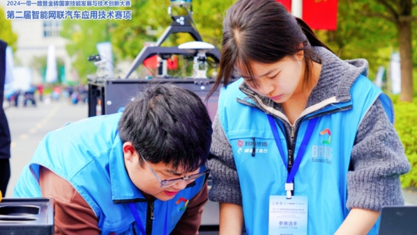 大賽首日,新能源汽車仿真賽項拉開帷幕。參賽選手們需要在限定時間內(nèi),通過計算機仿真技術(shù)模擬新能源汽車的運行狀態(tài),對車輛性能進行仿真分析和優(yōu)化。次日,新能源汽車裝調(diào)賽項火熱進行,該賽項要求選手們對智能網(wǎng)聯(lián)汽車進行細致的裝配、調(diào)試和標定,確保車輛各項功能正常運行。大賽最后一天,車路協(xié)同賽項成為焦點。該賽項要求選手在規(guī)定時間內(nèi)完成智能路側(cè)端設(shè)備的安裝、調(diào)試、通信連接、故障排除。張晴晴和彭耀祥展現(xiàn)出卓越的技術(shù)水平和團隊協(xié)作能力,精心裝配,耐心調(diào)試,確保每一環(huán)節(jié)都達到最佳狀態(tài)。