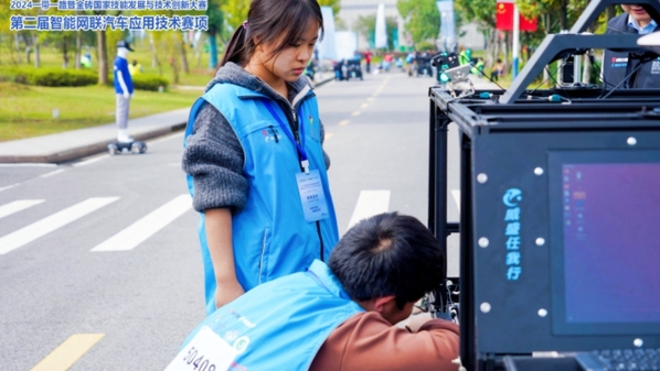 10月31日至11月2日,2024“一帶一路”暨金磚國家技能發(fā)展與技術(shù)創(chuàng)新大賽之第二屆智能網(wǎng)聯(lián)汽車應(yīng)用技術(shù)(綜合裝調(diào)、仿真、車路協(xié)同應(yīng)用技術(shù))賽項全國總決賽在宣城職業(yè)技術(shù)學院舉行。安慶職業(yè)技術(shù)學院機電工程學院舒滿征老師和單家正老師指導(dǎo)的張晴晴和彭耀祥兩位學生獲得高校組全國二等獎,教師組鮑成和邱雨兩位老師獲得職工組全國三等獎,舒滿征和單家正老師獲得優(yōu)秀指導(dǎo)教師稱號。