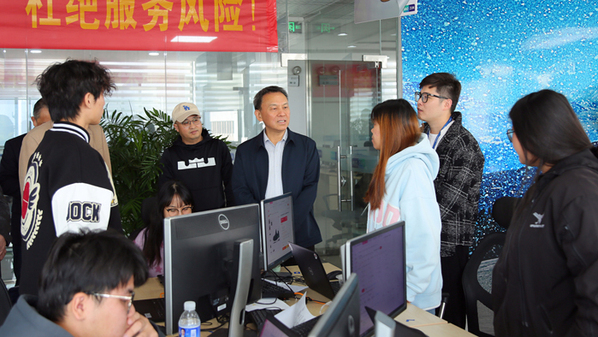 在安徽云霽電子商務(wù)有限公司,童宏葵詳細(xì)了解了企業(yè)經(jīng)營、發(fā)展情況和同學(xué)們實(shí)習(xí)工作情況。公司負(fù)責(zé)人汪義德很滿意地說,企業(yè)員工中,有三分之一來自安職院。同學(xué)們能夠快速適應(yīng)職場環(huán)境,展現(xiàn)出良好的職業(yè)素養(yǎng)和專業(yè)技能。公司與安慶職院已達(dá)成較為深入的合作,目前以訂單班等形式共同制定了人才培養(yǎng)方案和教學(xué)計(jì)劃,打造具有特色的課程體系和實(shí)踐教學(xué)體系,已聯(lián)合培養(yǎng)了三屆電商專業(yè)學(xué)生。童宏葵看到在這里實(shí)習(xí)、就業(yè)的學(xué)生,個個精神飽滿,人人干勁十足,非常欣慰,鼓勵他們再接再厲,任勞任怨,為公司多作貢獻(xiàn),為學(xué)校多爭光。