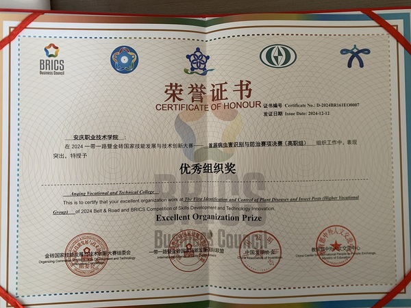 近日,“一帶一路”暨金磚國(guó)家技能發(fā)展與技術(shù)創(chuàng)新大賽,首屆數(shù)智農(nóng)業(yè)種植技術(shù)創(chuàng)新賽項(xiàng)和首屆病蟲(chóng)害識(shí)別與防治賽項(xiàng)比賽結(jié)果揭曉。安慶職業(yè)技術(shù)學(xué)院農(nóng)林與服裝學(xué)院植物保護(hù)與檢疫技術(shù)專業(yè)12名學(xué)生共斬獲三個(gè)二等獎(jiǎng)、兩個(gè)三等獎(jiǎng)。