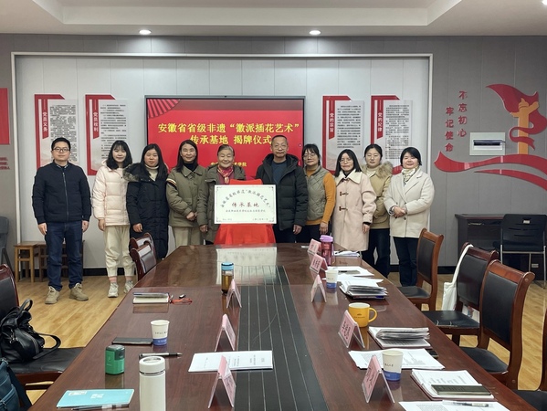 近日,省級非物質文化遺產(chǎn)“徽派插花藝術”傳承基地在安慶職業(yè)技術學院農(nóng)林與服裝學院揭牌。省級非遺“徽派插花藝術”傳承人付玉蘭教授及團隊成員,該院黨總支書記、院長李進恩,教學工作負責人,老師代表參加儀式。