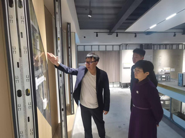團隊教師先后參觀了該公司的裝配化裝飾樣板間和裝配化裝飾材料工廠,實地了解生產(chǎn)流程和質(zhì)量管控體系。公司負責(zé)人詳細介紹了裝配式裝修的創(chuàng)新設(shè)計理念、現(xiàn)代化的生產(chǎn)設(shè)備和質(zhì)量檢測環(huán)節(jié),以及環(huán)保材料的應(yīng)用等高效的施工工藝,充分展示了裝配式裝修在多樣化的應(yīng)用場景,提升空間品質(zhì)和縮短工期方面的顯著優(yōu)勢。