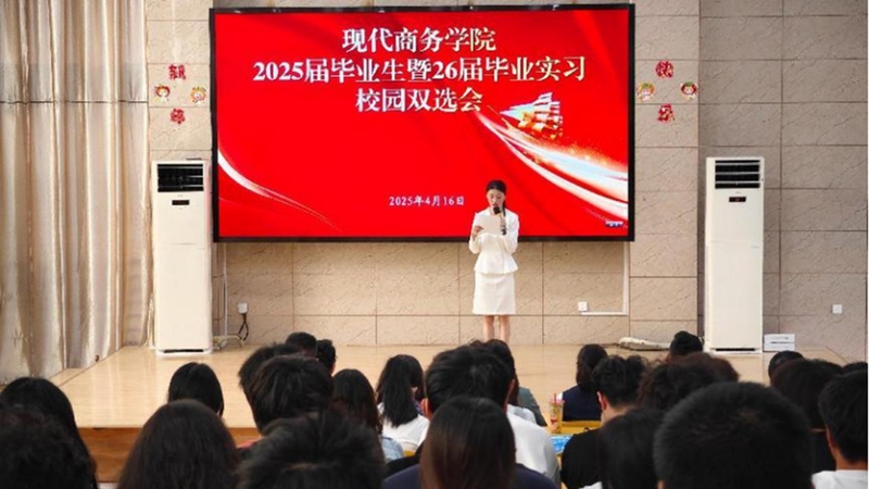 4月16日下午,安慶職業(yè)技術(shù)學(xué)院現(xiàn)代商務(wù)學(xué)院舉辦2025屆畢業(yè)生校園雙選會。學(xué)院黨總支書記金啟勝、招生就業(yè)處負責(zé)人及800余名師生參加活動。