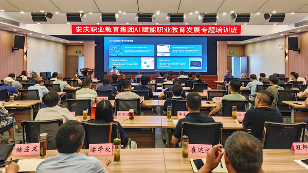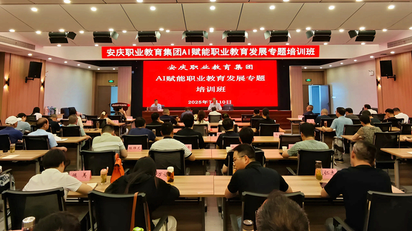 7月10日,安慶職業(yè)教育集團(tuán)在安慶職業(yè)技術(shù)學(xué)院圖文信息中心舉辦AI賦能職業(yè)教育發(fā)展專題培訓(xùn)班。安慶職業(yè)教育集團(tuán)理事長(zhǎng),安慶職業(yè)技術(shù)學(xué)院黨委副書記、校長(zhǎng)畢明生到班指導(dǎo)并全程參會(huì)。集團(tuán)秘書長(zhǎng),安慶職院黨委副書記李克讓主持培訓(xùn)會(huì)。校黨委委員陳繼平、吳何珍、李五一全程參加。培訓(xùn)班特邀安慶職院教授疏國(guó)會(huì)和研究員吳一鳴做專題講座。集團(tuán)成員13所院校的主要負(fù)責(zé)人、職能部門管理人員和教學(xué)單位管理人員共計(jì)140余人參訓(xùn)。