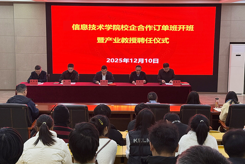 12月10日下午,安慶職業(yè)技術(shù)學(xué)院信息技術(shù)學(xué)院在2號教學(xué)樓216信仰報告廳舉行2025級信息安全專業(yè)校企合作訂單班開班暨產(chǎn)業(yè)教授聘任儀式。該院黨總支書記、院長疏國會,安慶市新聞傳媒中心正高級工程師王國棟,安徽盛世航明科技有限公司總經(jīng)理戴勛、技術(shù)總監(jiān)儲昭俊出席。該院教學(xué)工作負(fù)責(zé)人主持儀式,信息安全技術(shù)應(yīng)用專業(yè)全體師生參加。