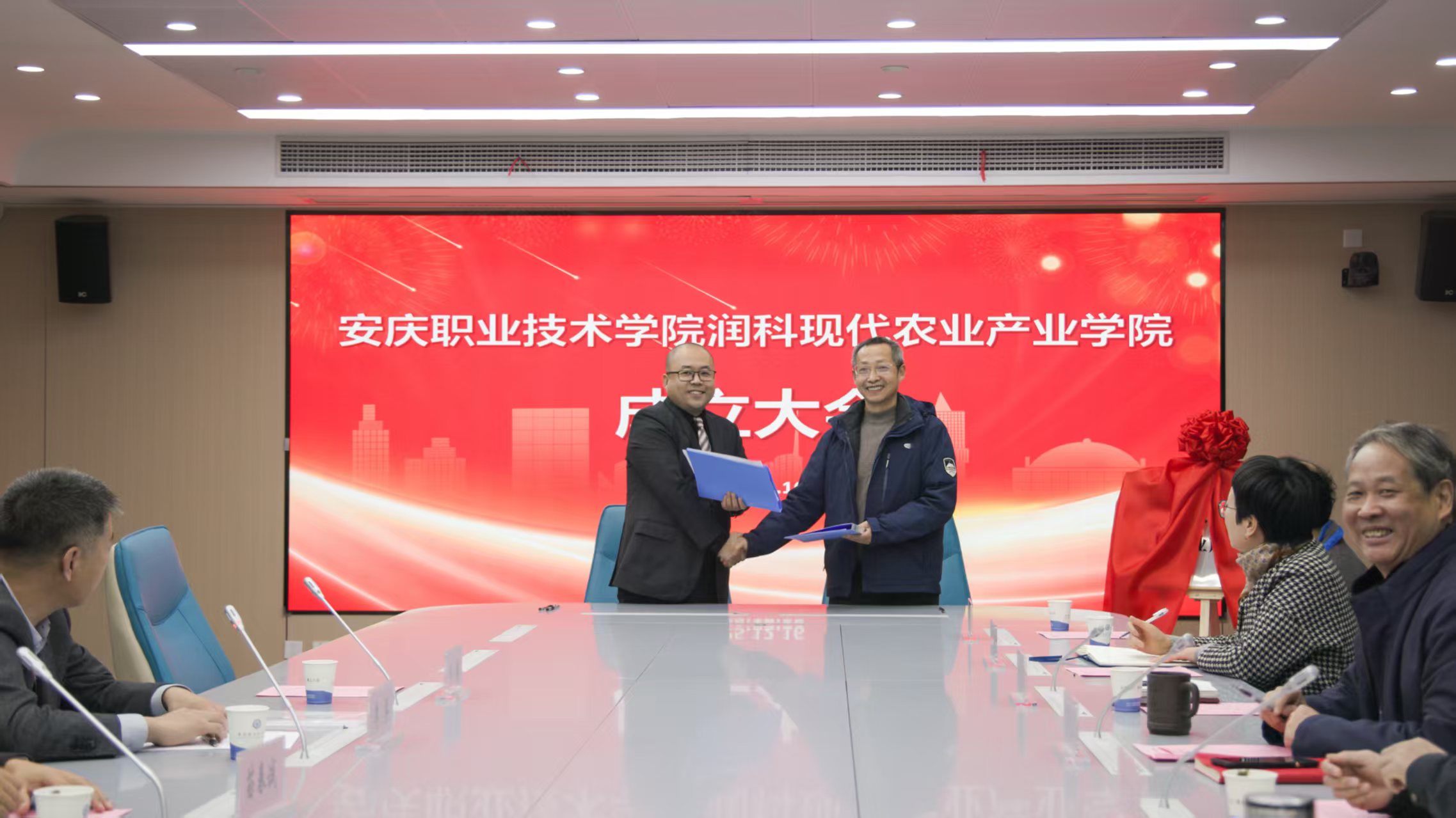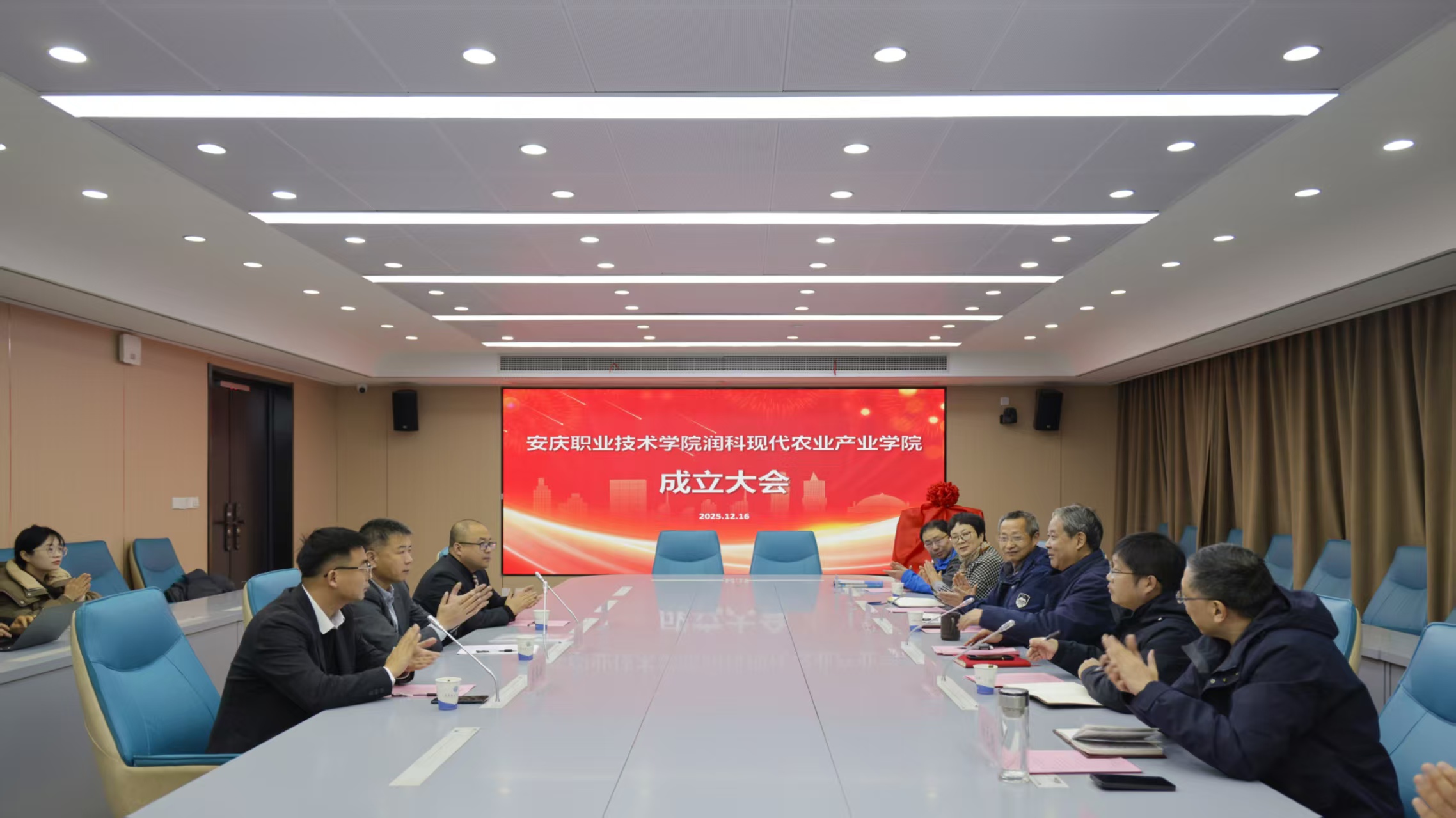 12月16日,安慶職業(yè)技術(shù)學(xué)院與安徽潤科農(nóng)業(yè)科技有限公司共建的安慶職業(yè)技術(shù)學(xué)院潤科現(xiàn)代農(nóng)業(yè)產(chǎn)業(yè)學(xué)院在校425會議室舉行揭牌儀式。安慶職院黨委副書記李克讓主持儀式。安徽潤科農(nóng)業(yè)科技有限公司董事長李兵、安慶市農(nóng)業(yè)農(nóng)村局副局長周克海出席,安徽潤科公司代表,校企合作辦、農(nóng)林與服裝學(xué)院負(fù)責(zé)人及教師代表參加。